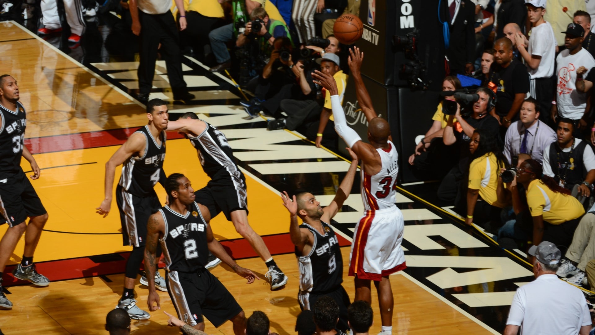 I had the perfect angle as a rebounder. You know when a shot comes from one side of the basket, it was coming from the right corner, that the rebound most likely will bounce to the left corner. So I was sitting right on the left corner baseline, right in front of the shot. When Ray released it, I knew it was good. I can tell, as a rebounding guy, that it was not long, it wasn’t short, it was right on target. So I kind of anticipated it going in.