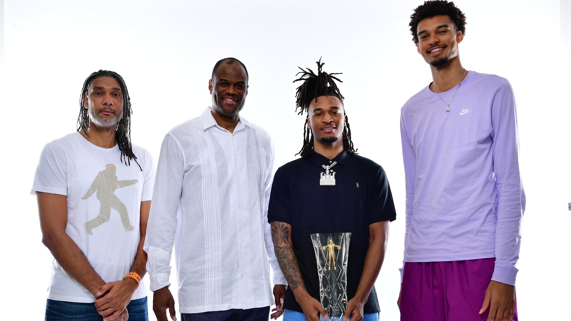 Stephon Castle, alongside fellow Kia Rookie of the Year award winners for the Spurs