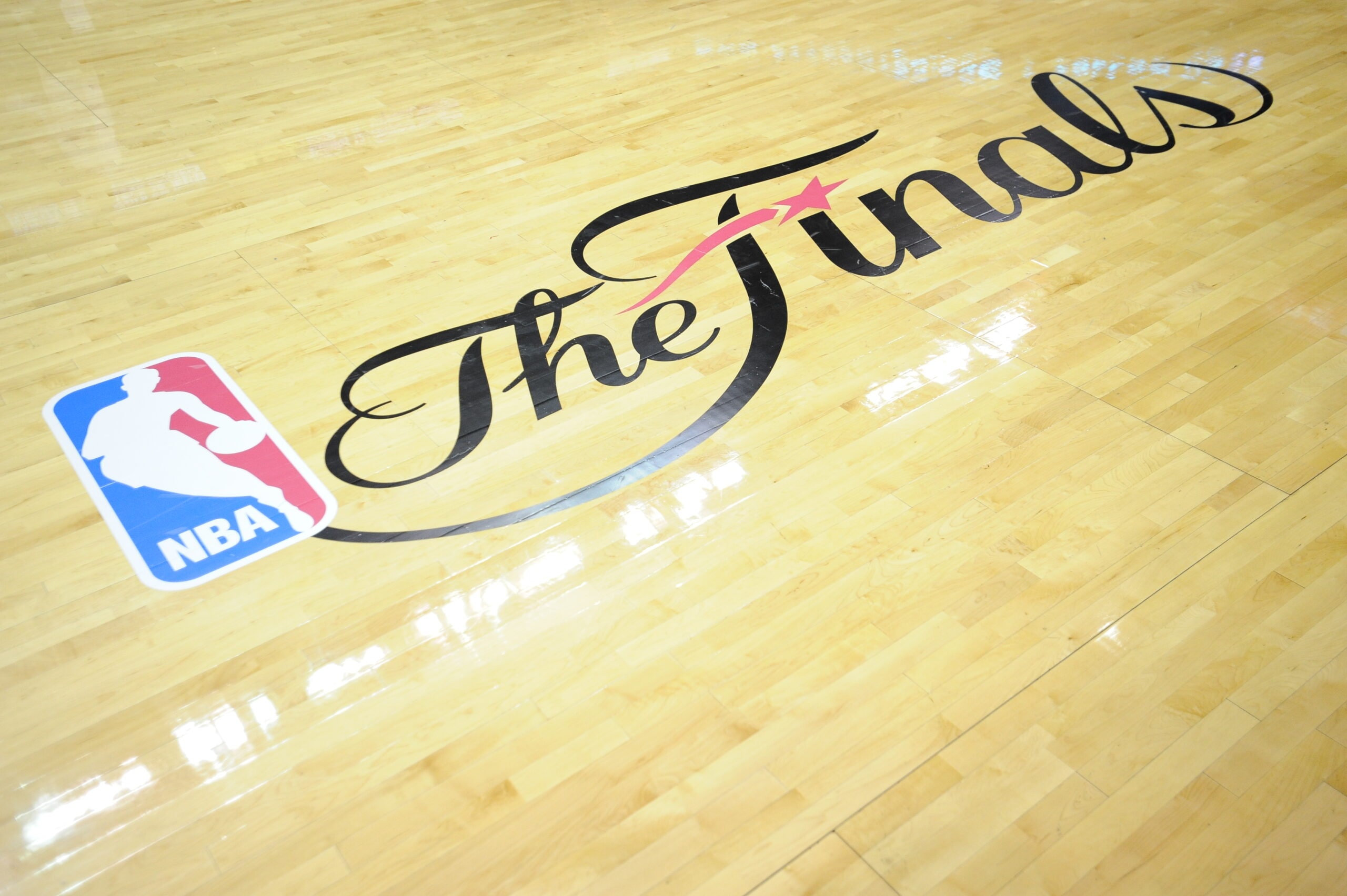 The Larry O’Brien trophy, at center court, and the NBA Finals script logo will each be painted onto the home team’s court throughout the series. The last time the large trophy was painted on the court was in 2009, when the Los Angeles Lakers defeated the Orlando Magic in the NBA Finals.