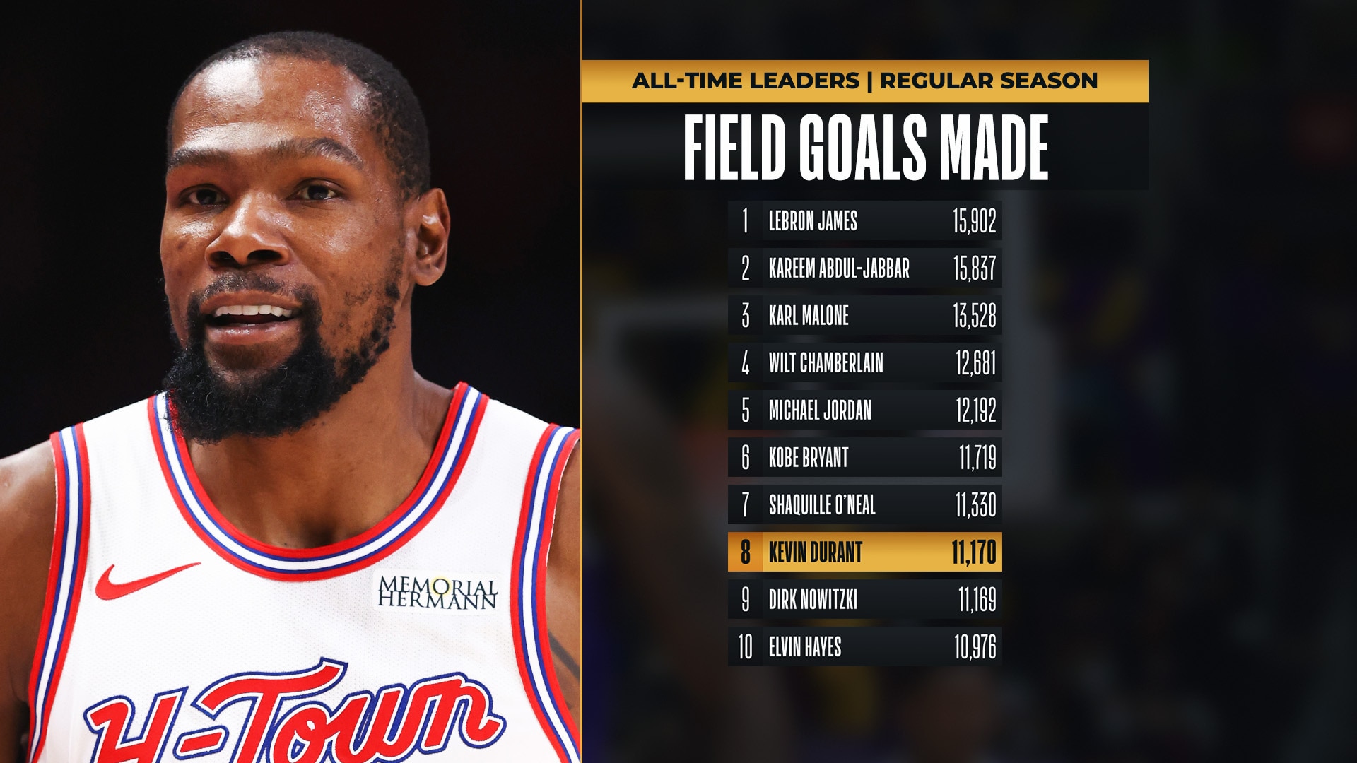 Kevin Durant passed Dirk Nowitzki in career field goals made on Wednesday night.