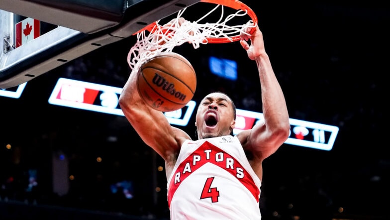Scottie Barnes and the Raptors enter Sunday with major Play-In Tournament implications as they face the Brooklyn Nets. (Getty Images)