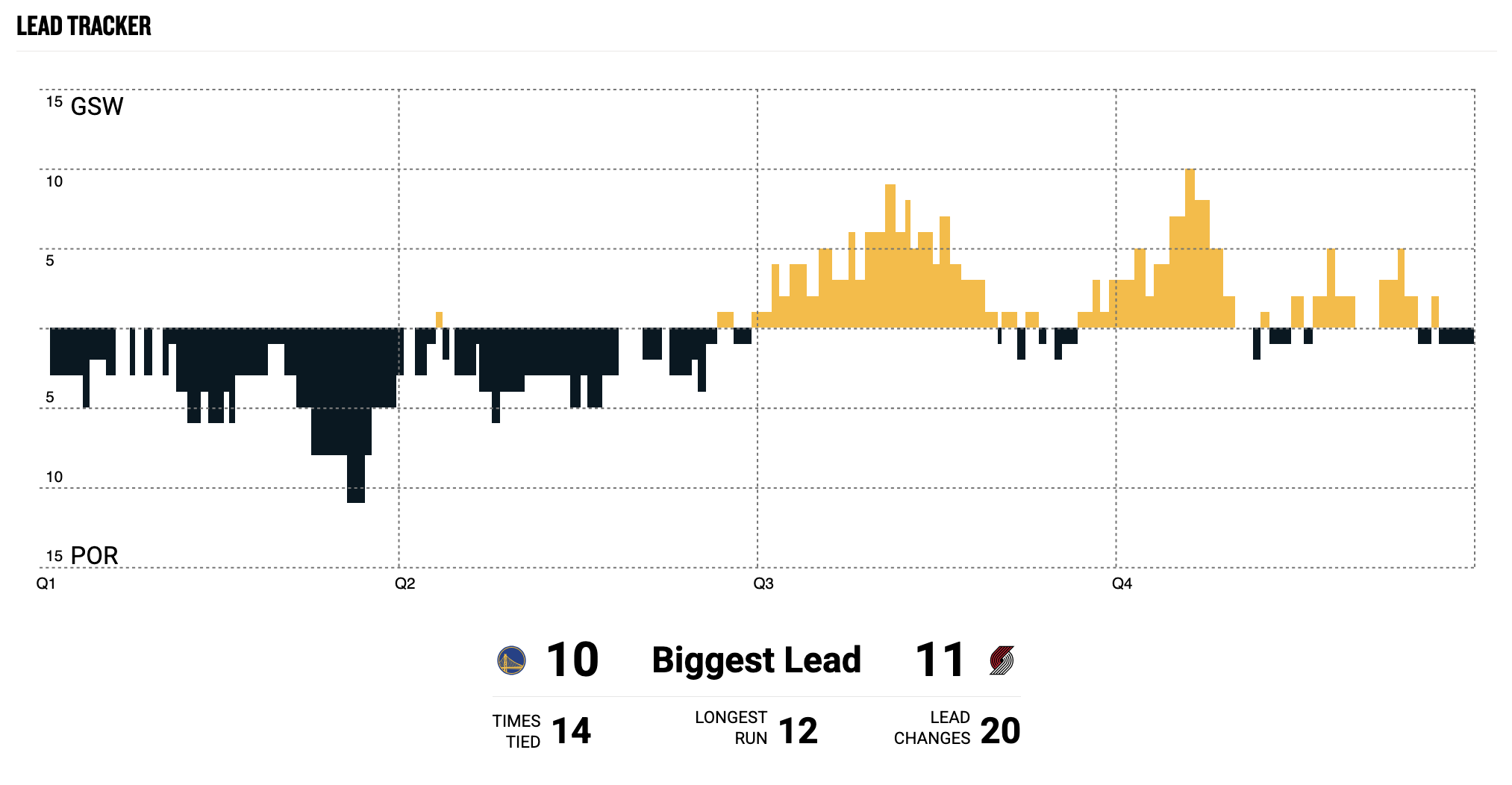 Stephen Curry — more to come. Curry must be seen to be believed. He still navigates the floor and hits tough shots like no other. He’s in a different mode right now as Golden State has a 83-79 lead over the Trail Blazers midway through Q3.