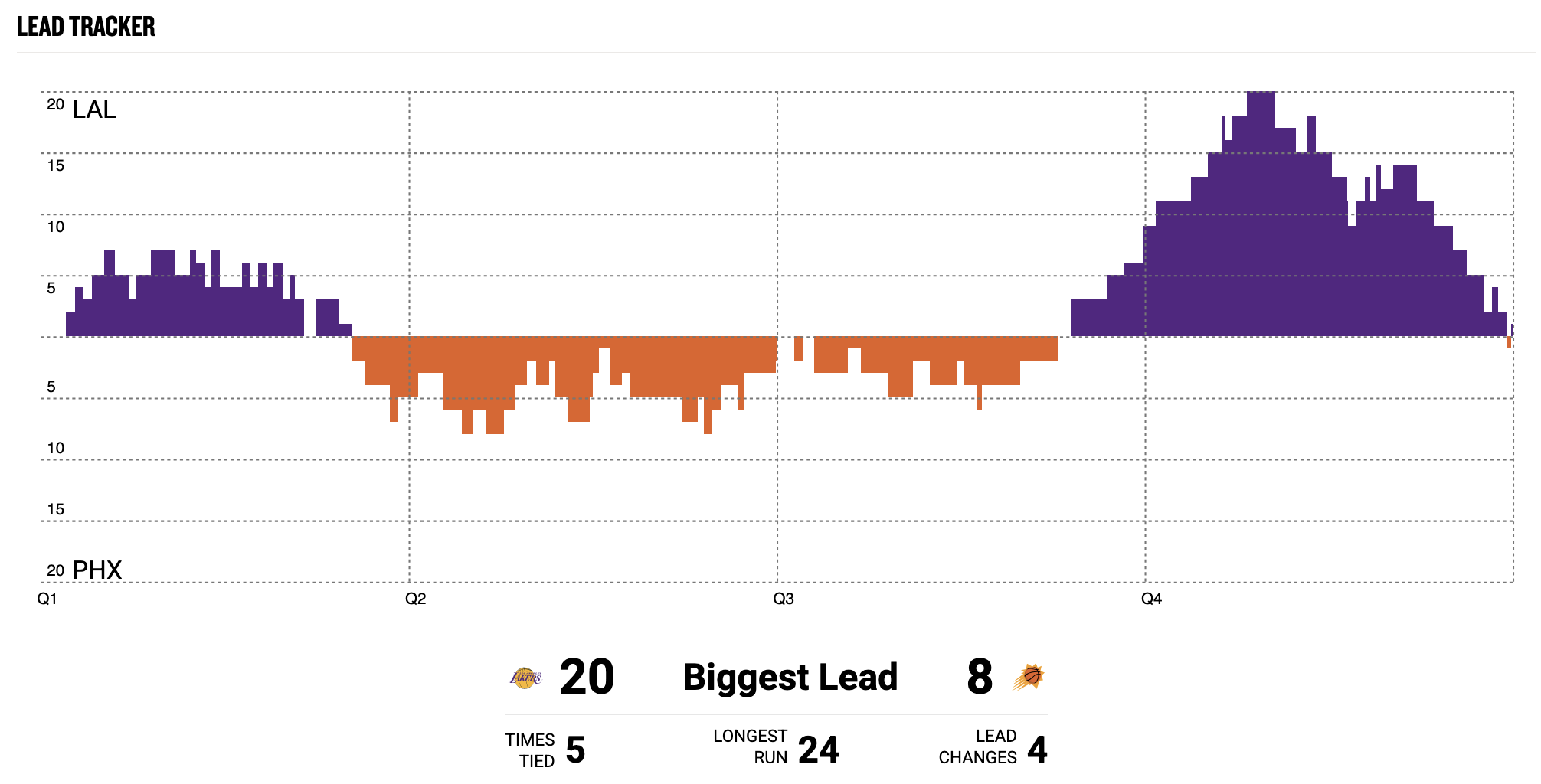 The Lakers went on a 24-0 run spanning into the middle of the fourth quarter, but Phoenix punched back to take the lead and overcome the 20-point deficit before Los Angeles got the last laugh.
