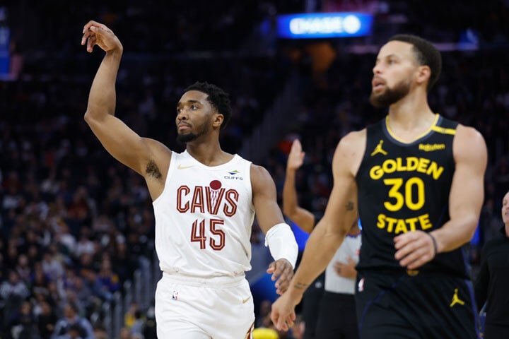 Cavs 113, Warriors 95: Darius Garland and Donovan Mitchell combined for 48 points and eight 3s to lead the Cavs past the Warriors to stay perfect in the West (8-0) with their seventh straight win overall. | Recap