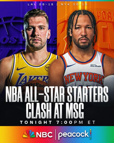 Lakers at Knicks (7 ET, NBC / Peacock / Telemundo): All-Star starters and former Mavs teammates Luka Dončić and Jalen Brunson square off while LeBron James plays his 32nd career game at The Garden.