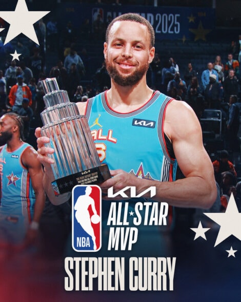 Curry finished the night with 20 points, 10 boards, six 3s and two trophies – marking just the 7th instance in the last 50 years that a player has won All-Star MVP with his team playing host.
