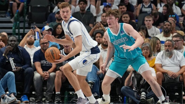 During an October preseason game, the Dallas Mavericks’ Cooper Flagg (left) and Charlotte Hornets’ Kon Knueppel, former teammates at Duke, were first-time NBA opponents.