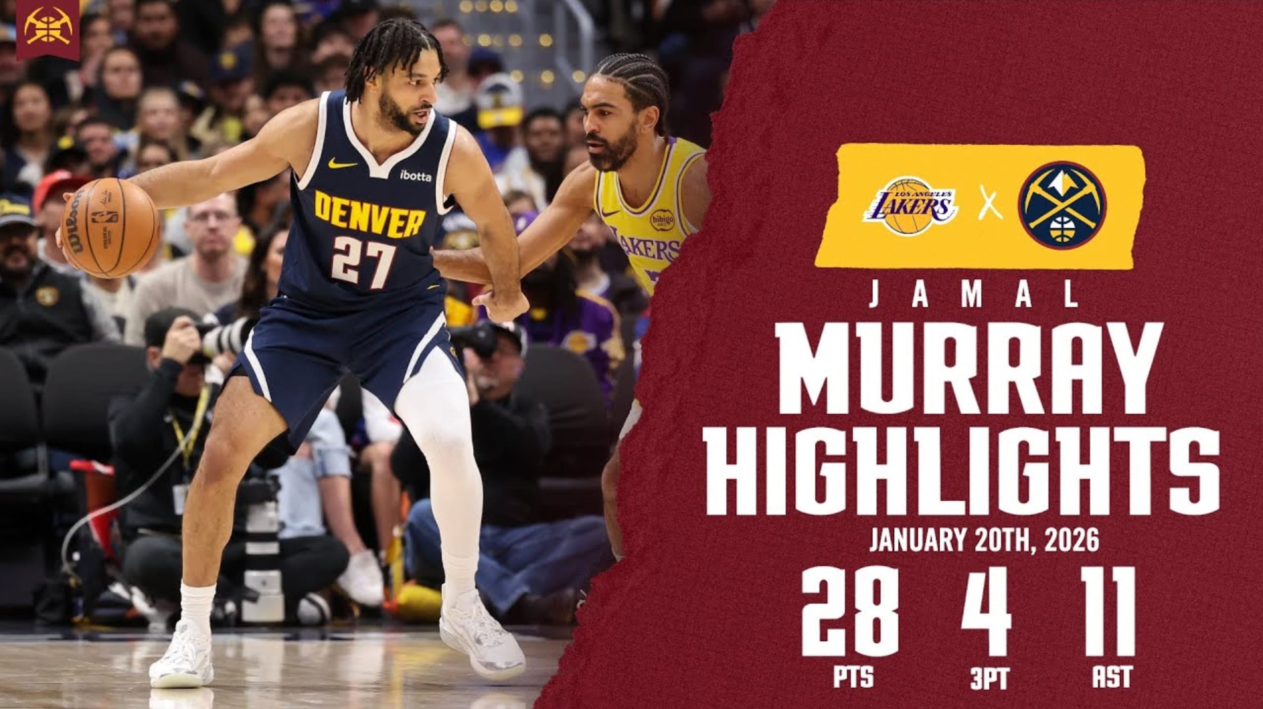 | Jan 20, 2026 | DEN vs. LAL | L | 36 | 28 | 10 | 21 | 47.6 | 4 | 8 | 50.0 | 4 | 4 | 100 | 0 | 2 | 2 | 11 | 0 | 0 | 1 | 2 | -3 |