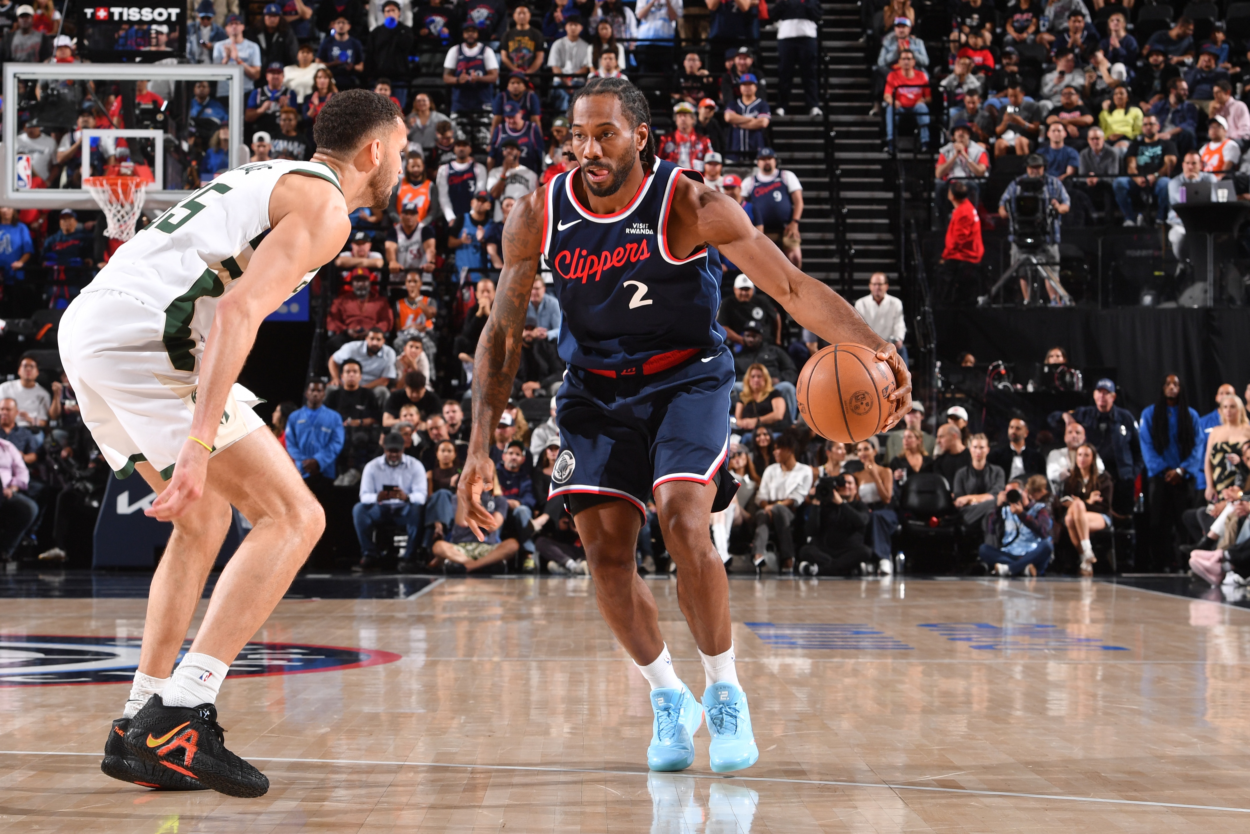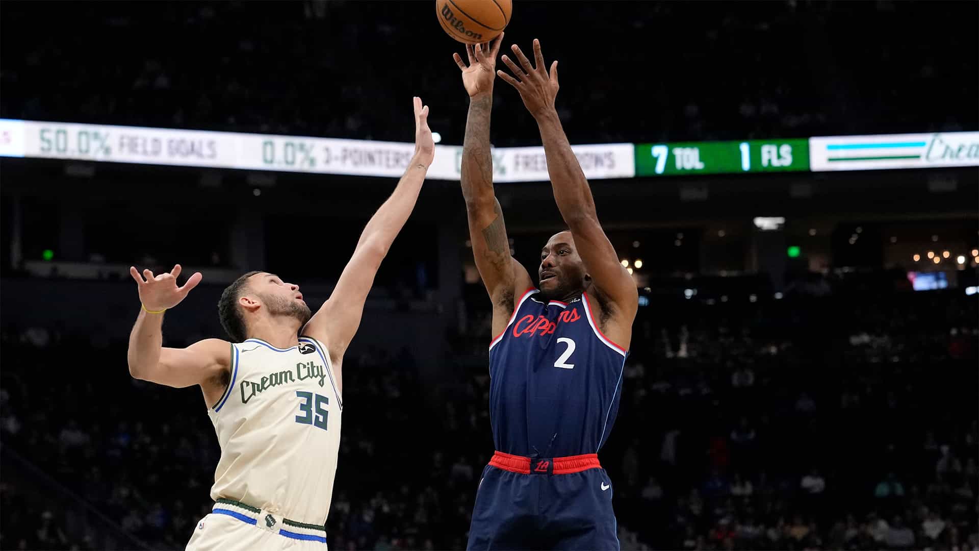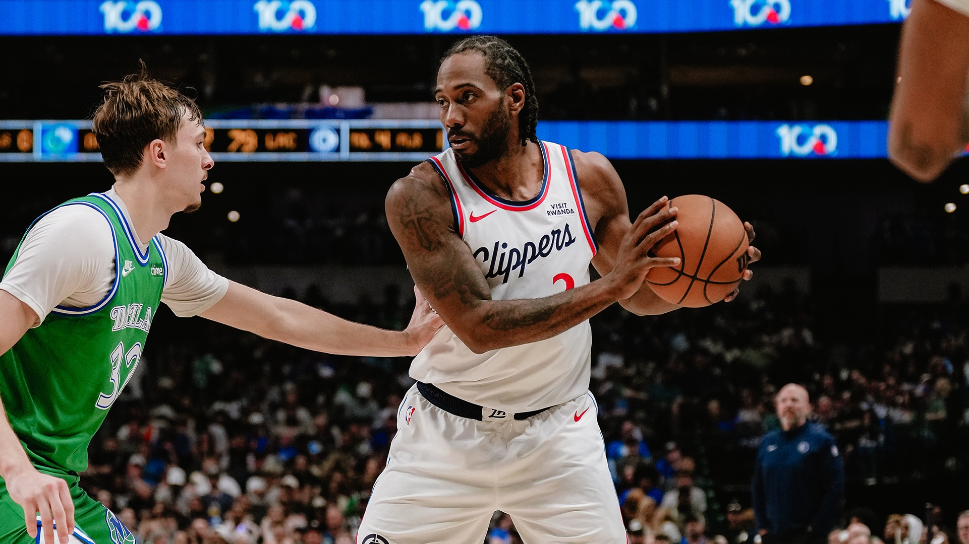 Leonard amassed 34 points (11-19 FG, 6-10 3Pt, 6-9 FT), four rebounds, three assists and one steal in 30 minutes during Tuesday's 116-103 win over the Mavericks.