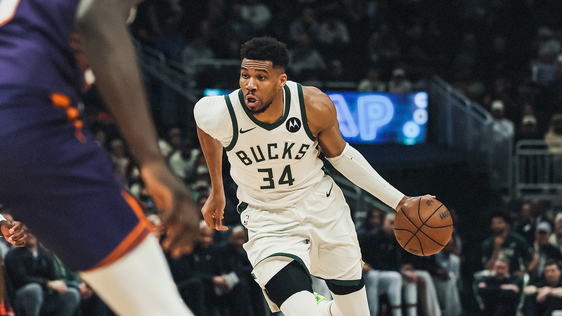 Antetokounmpo (leg) returned to the bench during the fourth quarter of Sunday's game against the Pacers, Eric Nehm of The Athletic reports.